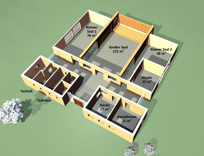 Einen räumlichen Eindruck unseres Gemeinschaftshauses vermitteln diese dreidimensionalen Modelle. (zum Vergrößern auf das Bild klicken)