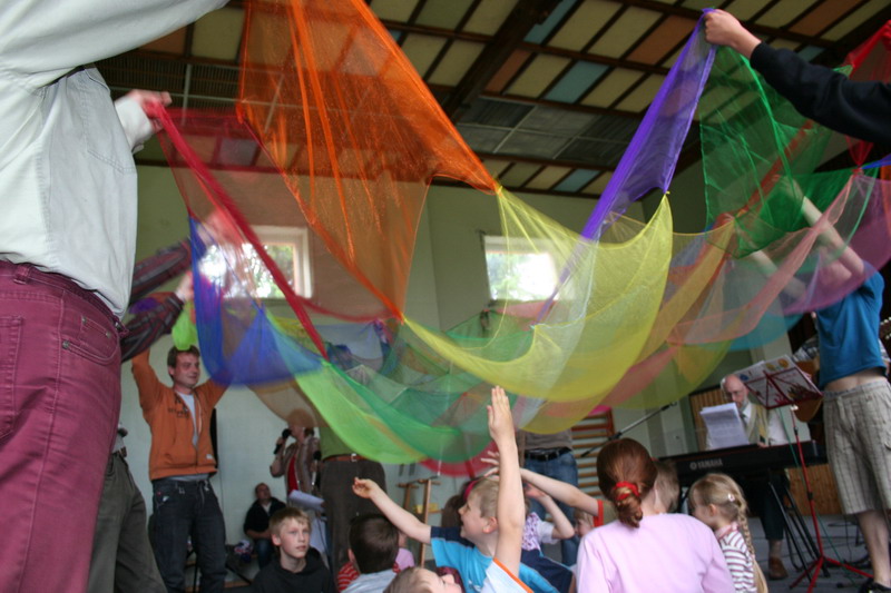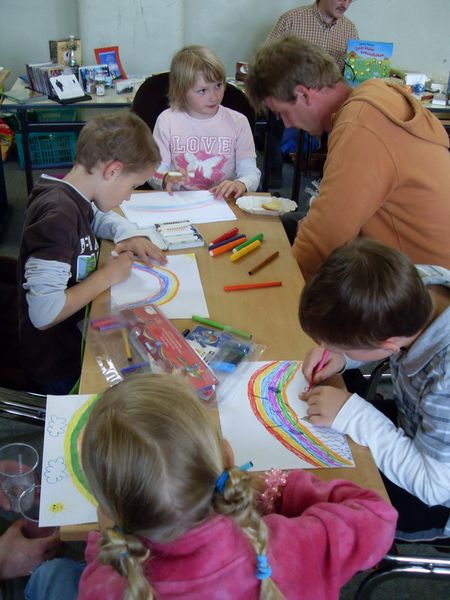 Passend zum Wetter erzählte Irmela die Geschichte von Noha und der großen Flut und dem Vertrauen Nohas zu Gott.