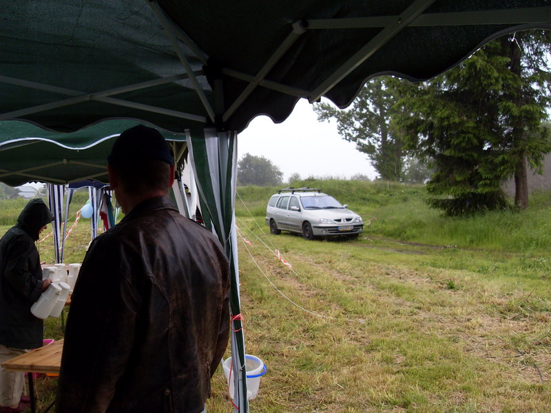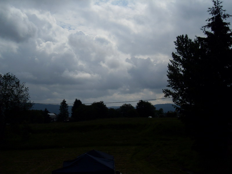 Gegen 14 Uhr zogen tiefschwarze Wolken auf. Erst begann es leicht, dann doch sehr heftig zu regnen und zu donnern. Manche "Bauten" konnten den Windböen nicht standhalten.