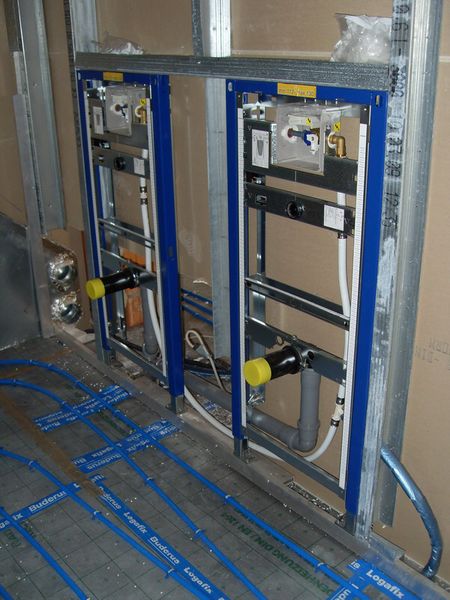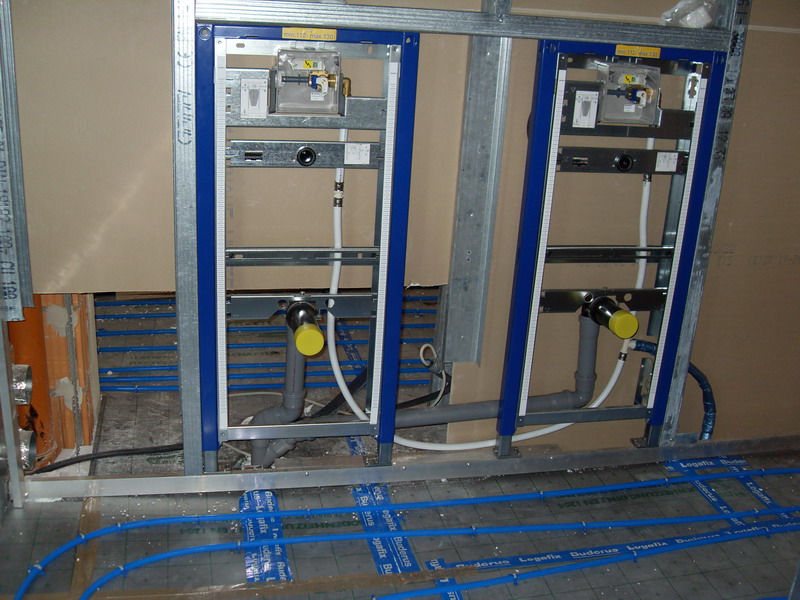 Reinhold Heizung Lüftung Sanitär begann mit dem Verlegen der Fußbodenheizung. Parallel dazu wurden Lüftungskanäle verlegt. Im Sanitärbereich ging es zugig voran.