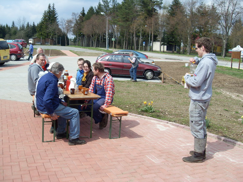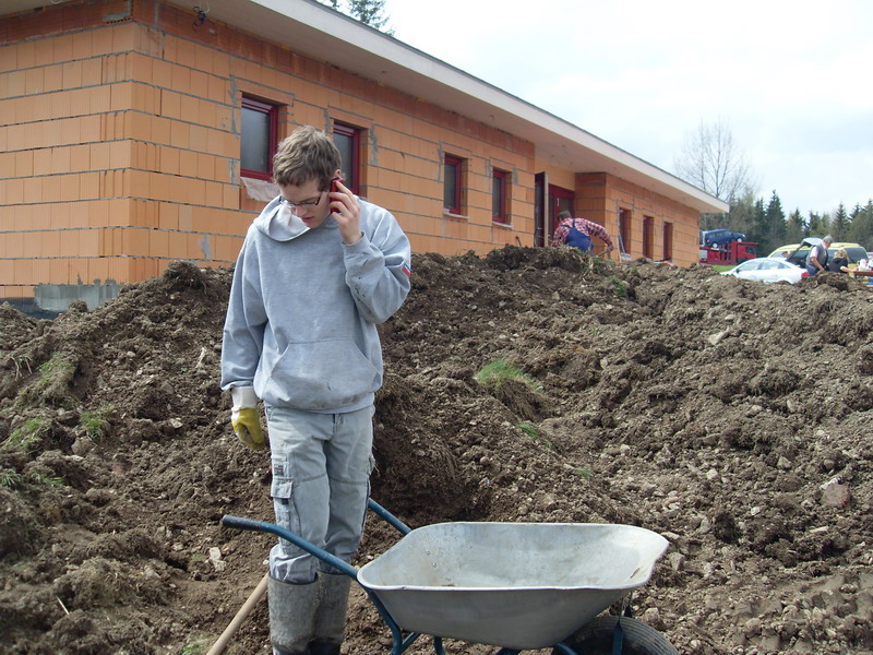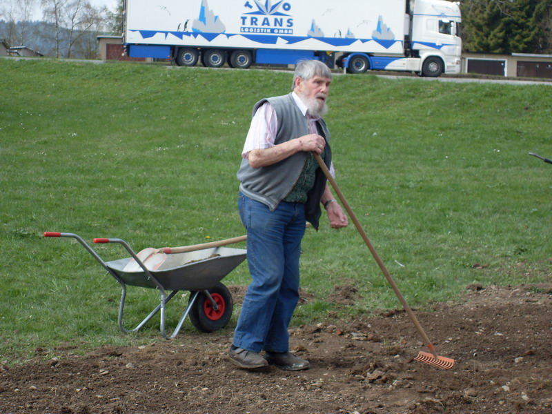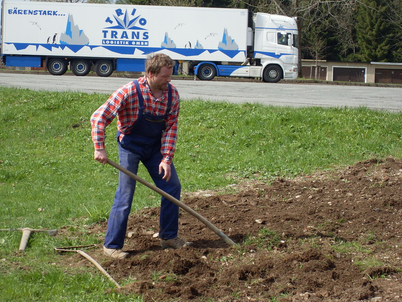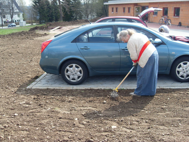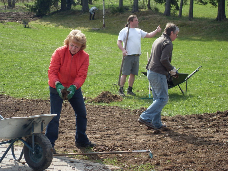 Gott hat uns aber wieder einmal überrascht. Das Wetter war sehr gut. Wir konnten sogar in der Sonne frühstücken und das Gelände und unser Gemeinschaftshaus ist wieder ein Stück einladender geworden. Rasen wurde eingesät, Erdwälle eingeebnet, Erde gesiebt, Blumen gepflanzt und noch einiges mehr.