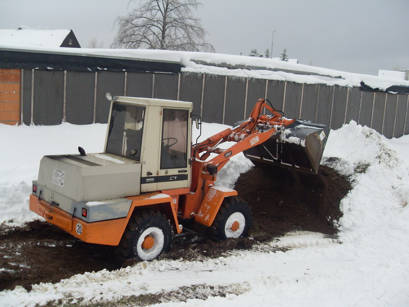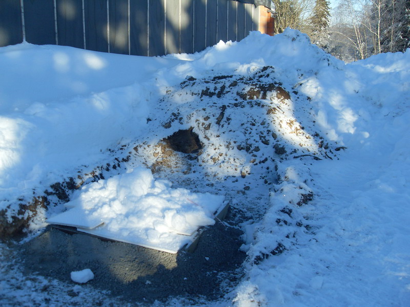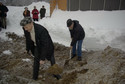 Nach langem schürfen im Schnee ist der Erdboden auszumachen und es kann eine erste Baugrube ausgehoben werden...