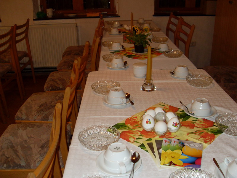 Was wäre diese Morgenfeier ohne das anschließende gemeinsame Osterfrühstück? - Es wäre nur eine halbe Sache. Deshalb nahmen sich die meisten der Besucher Zeit zum gemeinsamen Essen in geselliger Runde.
