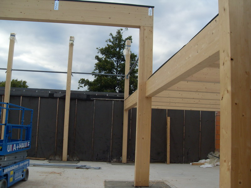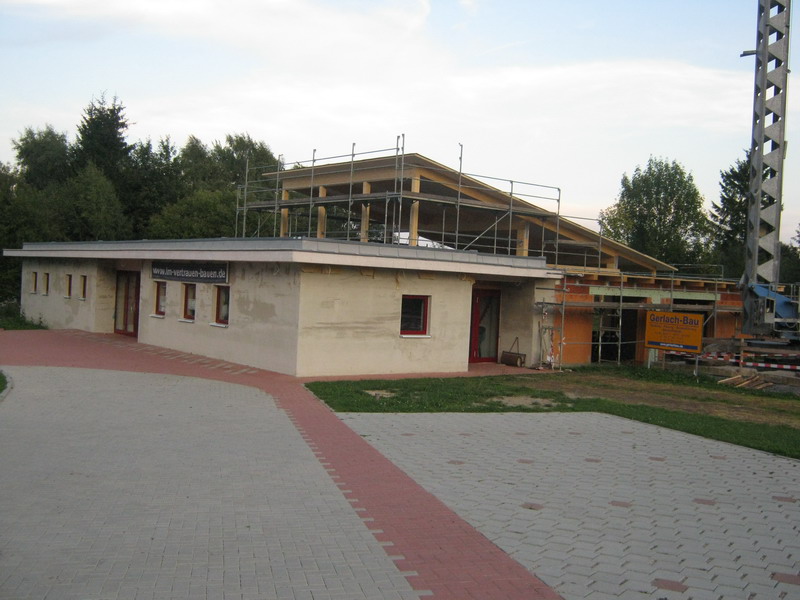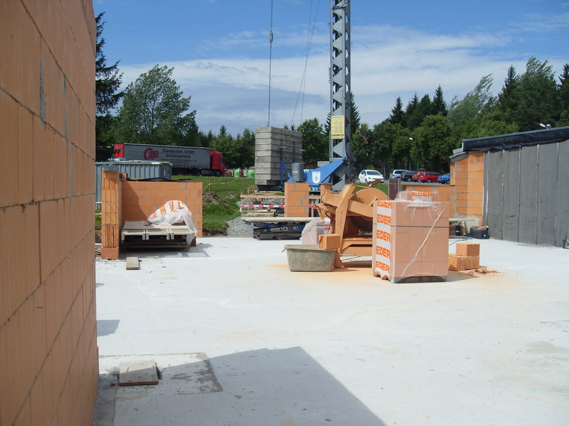 Nun bekommt man einen Eindruck von den zukünftigen Ausmaßen des Gemeinschaftssaales. Der Rohbau kommt gut voran.