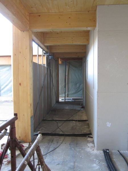 Die Trockenbauwände, welche Jugend- , Kinder- und Bibelstundenraum vom großen Saal trennen stehen.