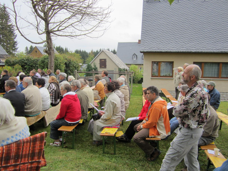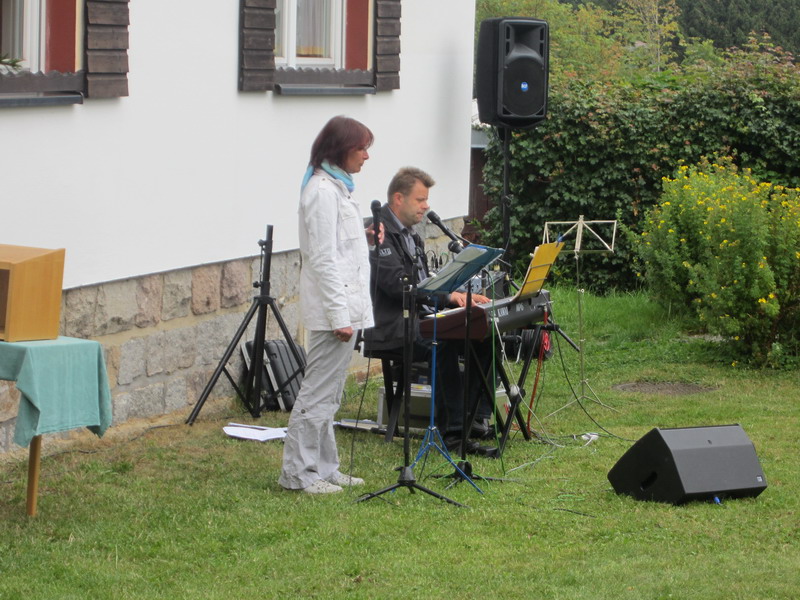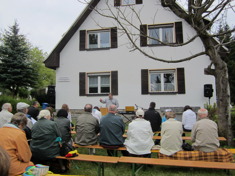 Das Fest fand dieses Jahr bei schönem, wenn auch nicht sonnigen Wetter im Freien statt. Rainer Voigt, der oft Gast im Haus ist, brachte uns in einer sehr persönlichen und zeugnishaften Predigt Gottes Liebe nahe.
