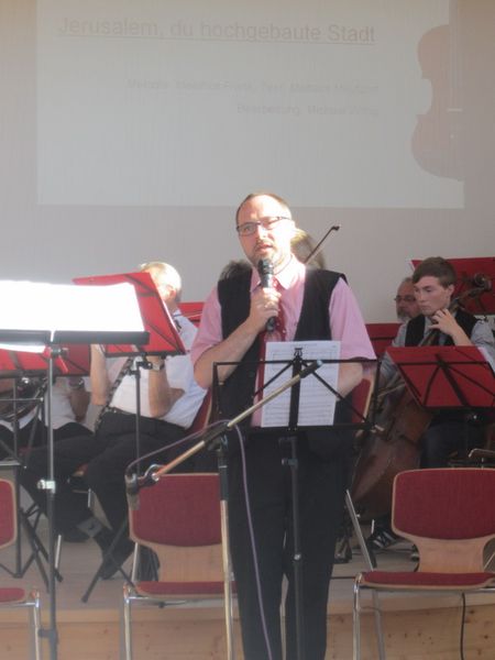 Den Saitenspielgottesdienst gestaltete der Saitenspielchor aus Zschorlau aus. Unterstützt wurde dieser von den Sängern des Chores der Gemeinschaft Johanngerogenstadt. Das Thema lautete: "Zu allen Zeiten gestern und heute". In den verbindenden Worten sagte Michael Wittig:
