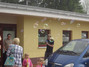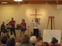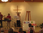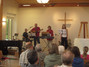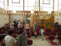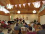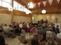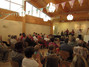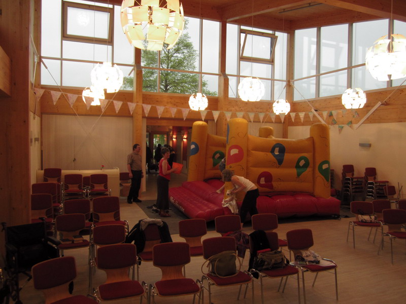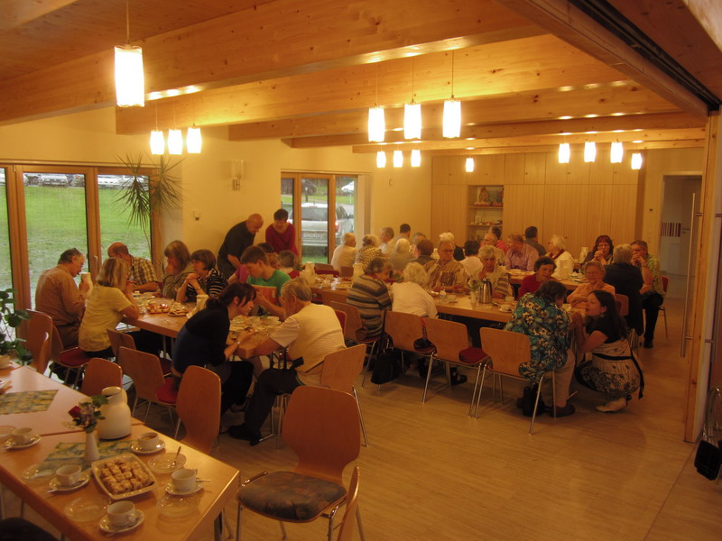 Wir saßen aber im Trockenen in unserem schönen Gemeinschaftshaus und die Stuhlreihen füllten sich zusehens, wenn vieleicht auch der ein oder andere vom Regen abgehalten wurde. Dafür fand auch mancher unverhofft ein trockenes Plätzchen.
