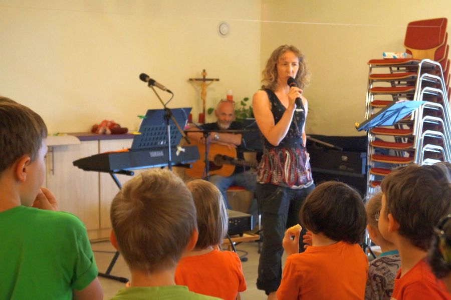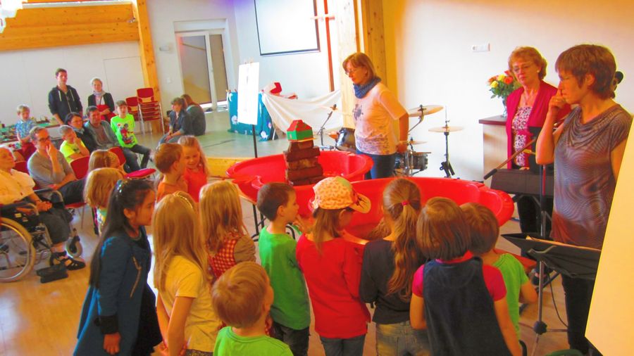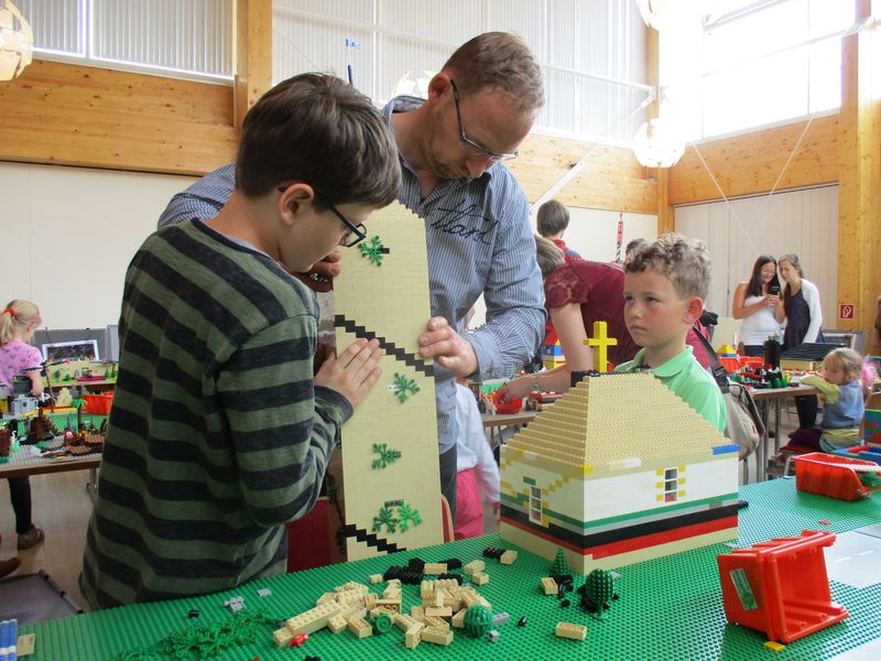 Die Andachten handelten passend zum LEGO-Bauen auch vom Bauen in biblischen Geschichten. Noah baute die Arche, Salomo baute den Tempel, ein reicher Landwirt baute sich große Scheunen.