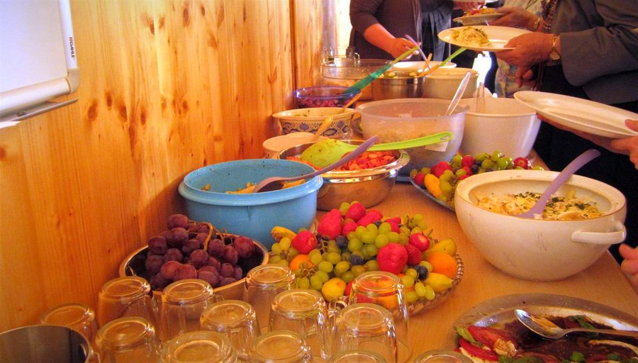 Das Wetter nahm glücklicherweise keinen Bezug zum Wasser. Wir konnten im Anschluss an den Posaunengottesdienst bei Sonnenschein mit Rostbratwurst und vielen leckeren Salaten den Nachmittag ausklingen lassen. Von den Kindern der Sonntagschule gab es alkoholfreie Cocktails, deren Erlös der Nachwuchsarbeit der Posaunenarbeit zugute kommt.