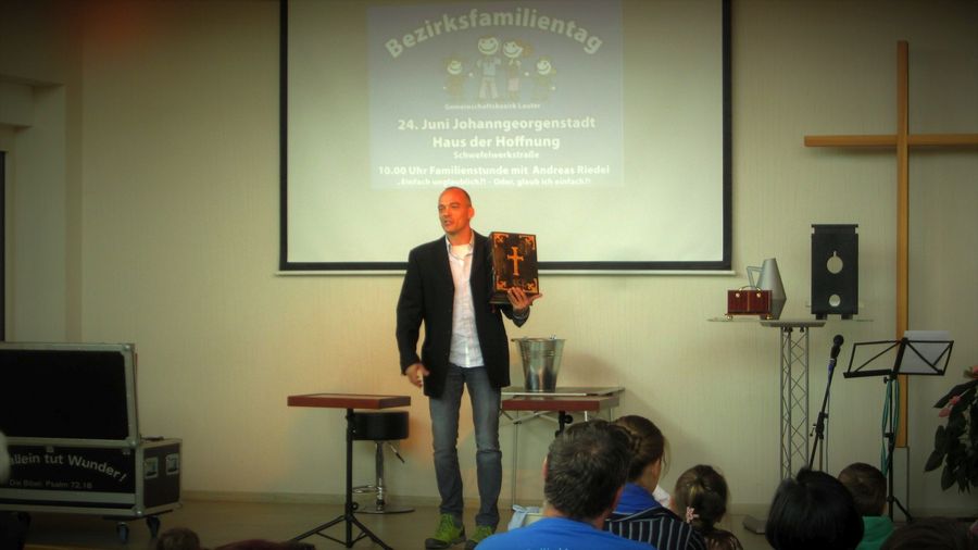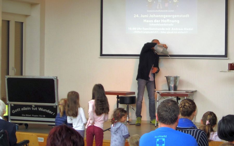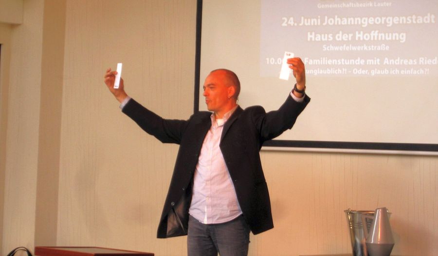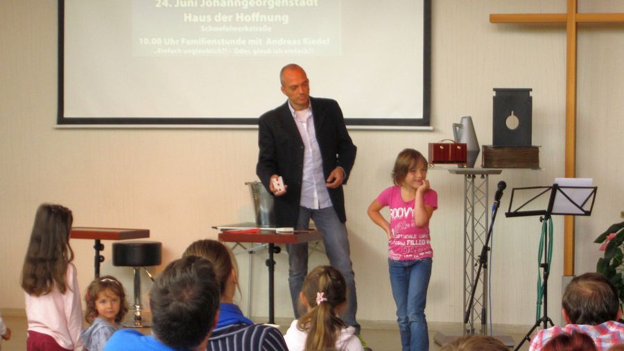 Am 24. Juni, war Andreas Riedel zu Gast im "Haus der Hoffnung" zum Bezirksfamilientag. Unter dem Thema "Einfach unglaublich! Oder: Glaub ich einfach?!" präsentierte er sein GospelMagic-Programm.