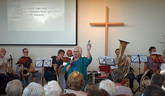 Auch die Musikstücke der Posaunen hatten Bezug zu Wasser. Da gab es Stücke aus Händels Wassermusik zu hören, gemeinsam wurde gesungen "Leben aus der Quelle, leben nur aus dir, leben aus der Quelle des Lebens".