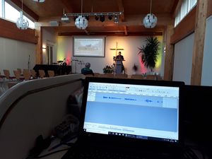 Deutschland diskutiert über den Ausstieg aus den strengen Kontaktverboten und den ganzen Schließungen. Noch wissen wir nichts Genaues. Wir nehmen den Gottesdienst jetzt an zwei Abenden auf. Mittwoch mit Begrüßung und Predigt, Donnerstag die Musik. Sonst wird es zu knapp. Für den Godi am 19. April macht Theodor die Begrüßung, Henrik predigt. Musik haben wir noch übrig, weil wir für Ostern gar nicht alles nutzen konnten, was eingespielt wurde. Deswegen ist in der Online-Version manchmal auf der Leinwand im Hintergrund noch „Willkommen zum Auferstehungsgottesdienst“ zu sehen. Das sorgt bei einigen Zuschauern kurz für Irritationen, nach dem Motto: Haben wir den falschen Gottesdienst angeklickt?