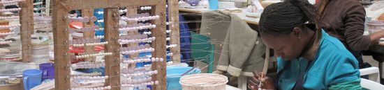 In der Schule gibt es ein Nähzimmer. Hier schneidern Frauen aus Stoffresten Taschen und Topflappen. Die werden verkauft, auch in Deutschland. Dass solche Projekte funktionieren, zeigt Kazuri. Das ist eine Perlen- und Keramikmanufaktur im Nairobi-Vorort Karen. Angefangen hat alles mit zwei Mitarbeiterinnen. Heute arbeiten hier 300 Frauen, fertigen Perlen per Hand, machen Ketten, Ohrringe, Armreifen und Geschirr. Die Produkte werden weltweit verkauft. Und die Frauen ernähren mit ihrem Lohn ihre Familien. Die DMG und andere Organisationen versuchen, solche Projekte voranzubringen. Im Slum Kibera besticken Frauen Kissen und Schürzen. Unter Somalis entstehen Patchworkbezüge. Und eine junge Frau aus Nairobi fertigt Schmuck, um ihren Lebensunterhalt zu verdienen.