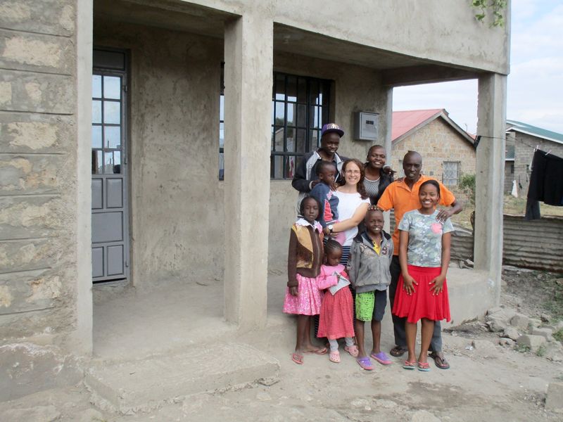 Bentina und Bernhard Alusi sind das Schulleiter-Ehepaar der Arche-Schule. Mit ihren Kindern, auf dem Foto sind auch Nichten, ein Neffe und Besuch aus Deutschland zu sehen, leben sie seit kurzem in einem Dorf nahe Nairobi. Vorher haben sie lange in einem Slum gewohnt. Der tägliche Schulweg der Alusis dauert eine Stunde, führt über eine Piste, die viel von einer Motorrad-Crossstrecke hat. Von Schlaglöchern zu sprechen, wäre eine gewaltige Untertreibung. Das Haus der Alusis ist gemietet. Doch sie hoffen, es kaufen zu können. Dann soll der Rohbau fertiggestellt werden. Noch bieten Wohn- und Kinder- und Schlafzimmer lediglich nackten Beton. Doch mit ihrem Haus haben die beiden große Pläne. Sie wollen hier eine Art Herberge aufbauen für Highschooler (Gymnasiasten), die zu Waisen werden. Während der Schulzeit sind sie zwar meist im Internat. In den Ferien, wenn Schule und Internat schließen, stehen sie aber ohne Dach über dem Kopf da. Die Alusis wollen das ändern. Wenn sie davon erzählen, sagen sie aber nicht: „Wir brauchen jetzt ganz viel Geld, sondern wir brauchen jetzt ganz viel Gebet.“